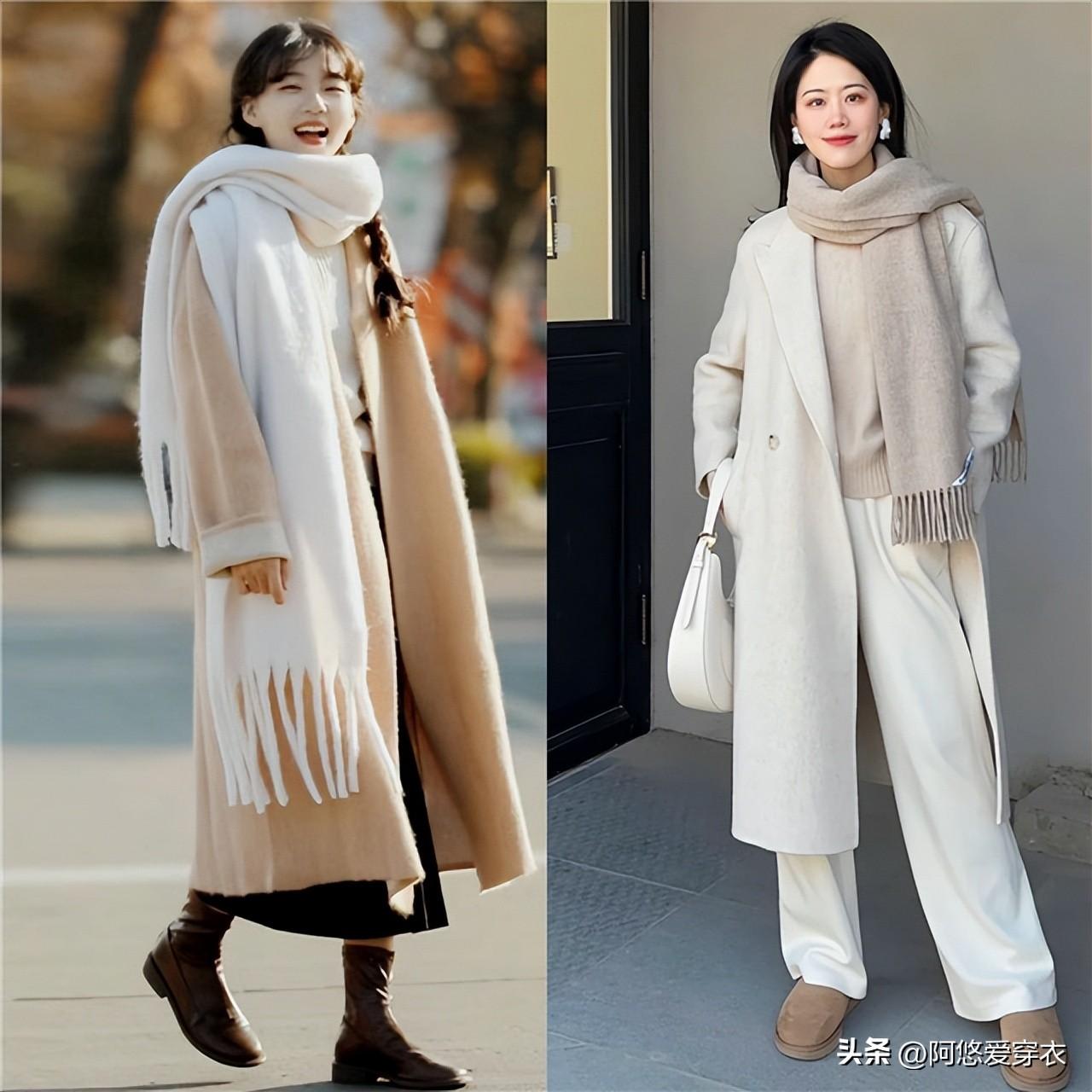 大衣和圍巾這一組穿搭真是今年冬季一個不錯的選擇,通過這樣的造型,既滿足我們的時髦需求,而且也能讓我們穿得洋氣且保暖,風度和溫度並存,沒有人會拒絕。