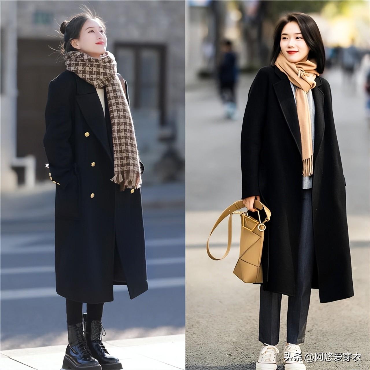 比較常見的方式就有這種上半身穿大衣和圍巾,下半身露腿的造型,下半身直接光腿,或者是搭配上一條黑絲以及光腿神器,可以讓我們的腿部線條得以展現,而且也削弱了造型的厚重感,讓身材優勢展現出來。