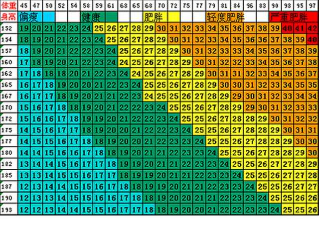 ▲BMI指數查詢表