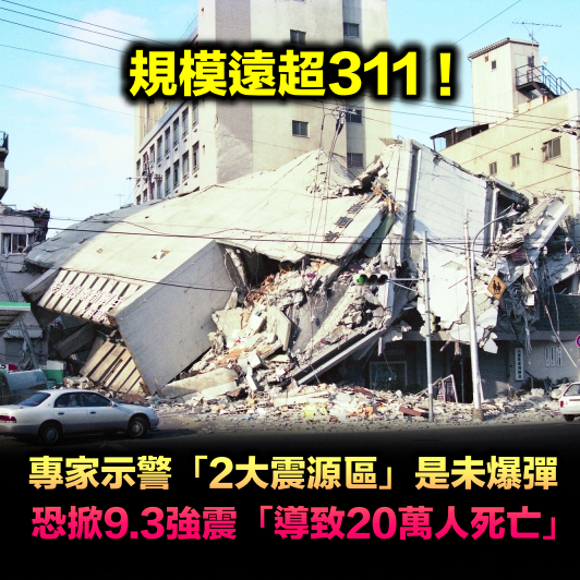 規模遠超311!專家示警「2大震源區」是未爆彈 恐掀9.3強震「導致20萬人死亡」