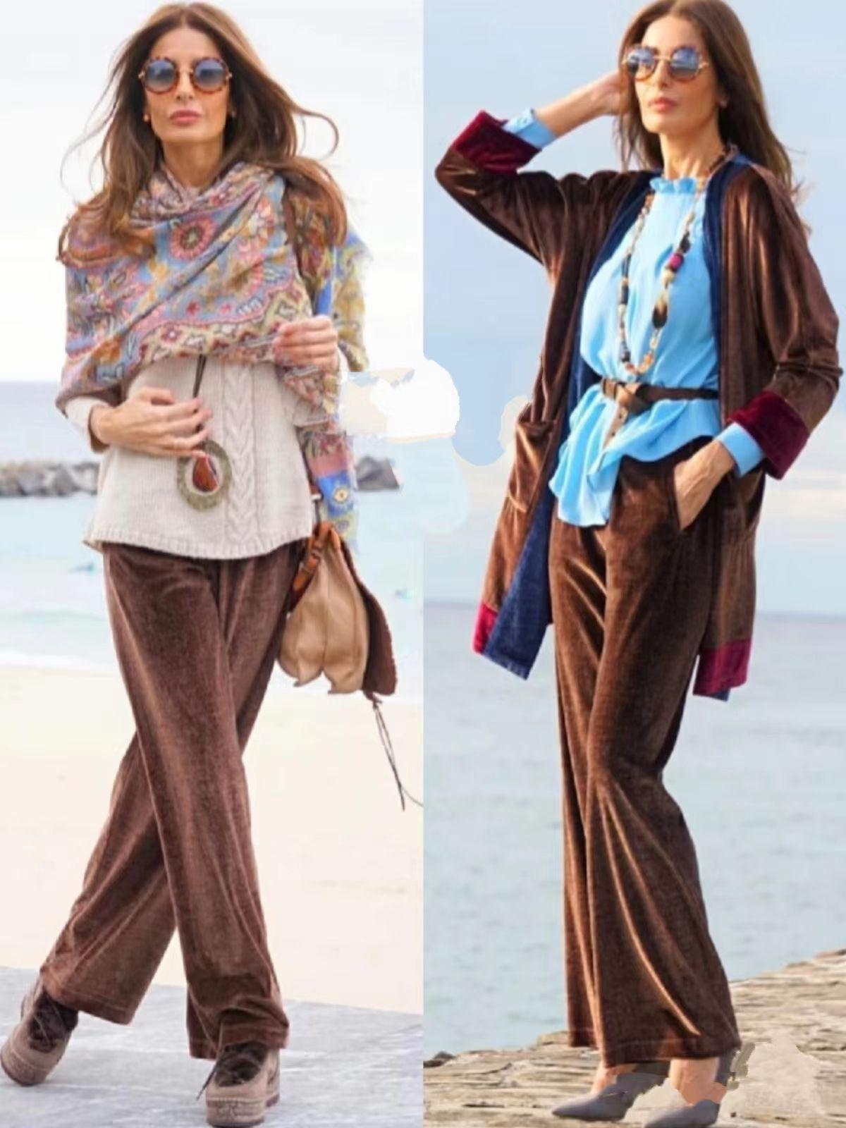 絲絨暖暖褲推薦選擇黑色或者深棕色系,經典大氣,可以表達出成熟女人的時尚氣場。
