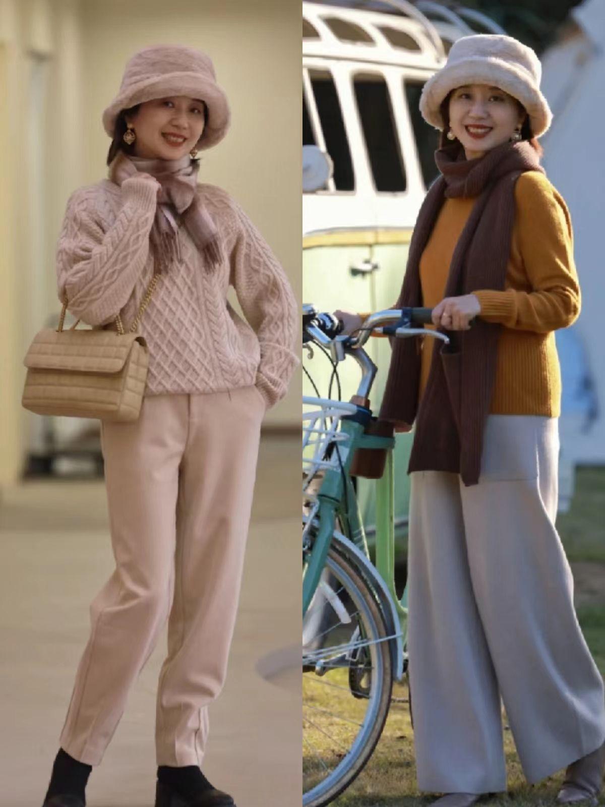 走優雅知性氣質的中年媽媽們,推薦選擇淺色系暖暖褲,比如米色、杏色、淺灰色或者燕麥色款式。
