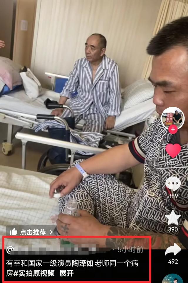 4月10日,一位網友曬出影片,說是和陶澤如在同一個病房,大家這才知道,陶澤如的身體不好,現在正在住院治療。