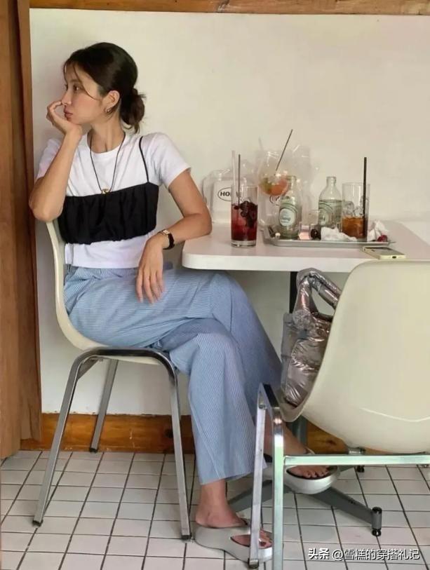 很多女生到了夏季特別喜歡穿拖鞋,尤其是人字拖最為常見。雖然這種鞋子穿脫方便,而且看上去十分隨意。但是與闊腿褲互相搭配在一起,不但沒有任何顯高的效果,而且整體呈現的視覺效果非常的邋遢和懶散,看上去太過土氣。