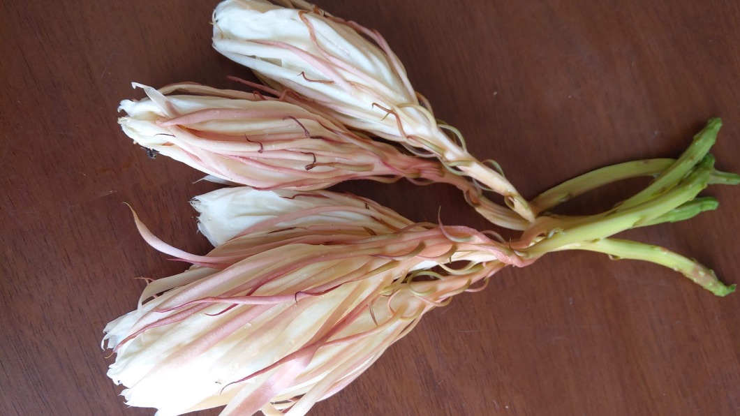其實這朵花有一個耳熟能詳的成語「曇花一現」,意思是稍縱即逝的機遇,而曇花花開時芳香四溢、沁人心脾,但時間短暫並在晚上開花,所以許多人認為能看到曇花綻放較難得,也就是此成語由來,不過比較少人知道曇花其實曬乾後拿來煮湯,味道可是相當美味,吃起來口感也有點像金針花。