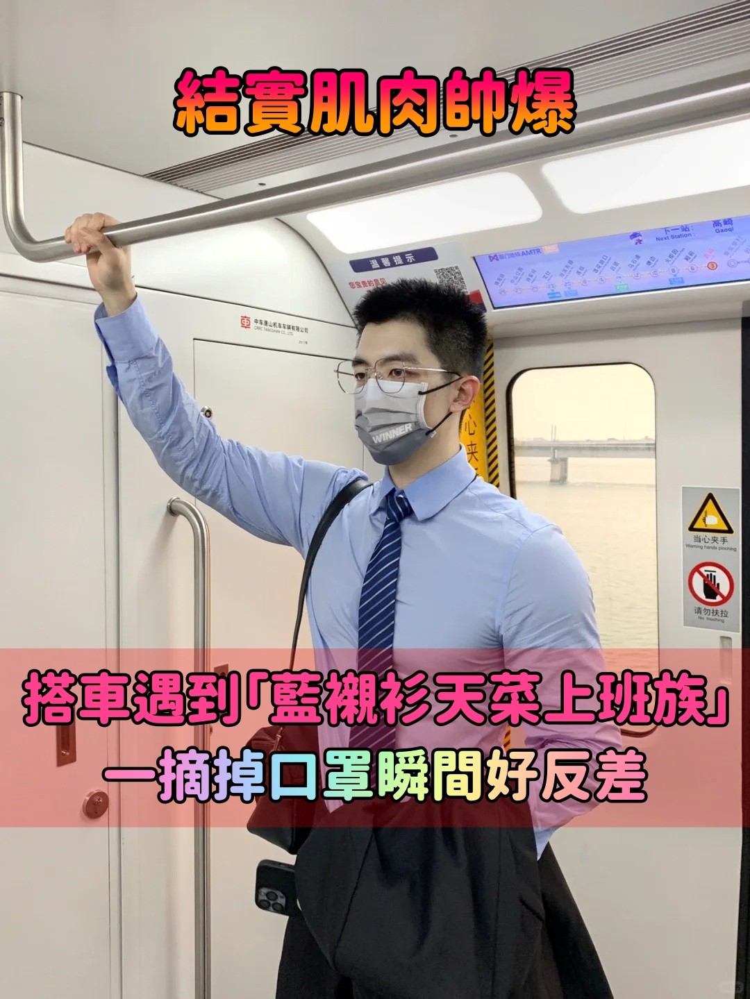 結實肌肉超man!通勤遇到「藍色襯衫天菜上班族」 口罩下真面目「秒變鄰家弟弟」好反差