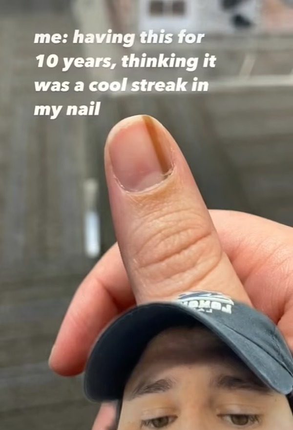 過去就曾有一名26歲女子分享經歷,在高中時她就注意到右手拇指指甲出現詭異黑線,但當時以為是痣不以為意,直到10年後證實患上「甲下黑色素瘤」,專家透露這種癌症需要10年至13年才會發展到一期,但一旦惡化到一期就會變得非常嚴重!