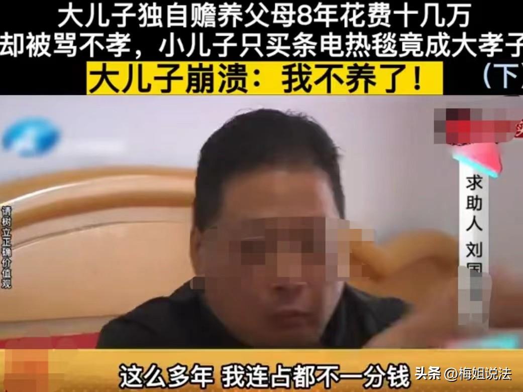 劉大哥獨自贍養年邁不能自理的父母八年,前後花了十幾萬元(約新台幣50萬)卻被母親罵不孝順,還要求他每個月拿3000塊(約新台幣1.3萬)給她請保姆。又被弟弟大罵:拿了老人的積蓄卻不贍養,太自私了!