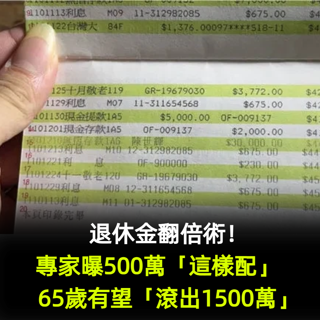 退休金翻倍術!專家曝500萬「這樣配」 65歲有望「滾出1500萬」