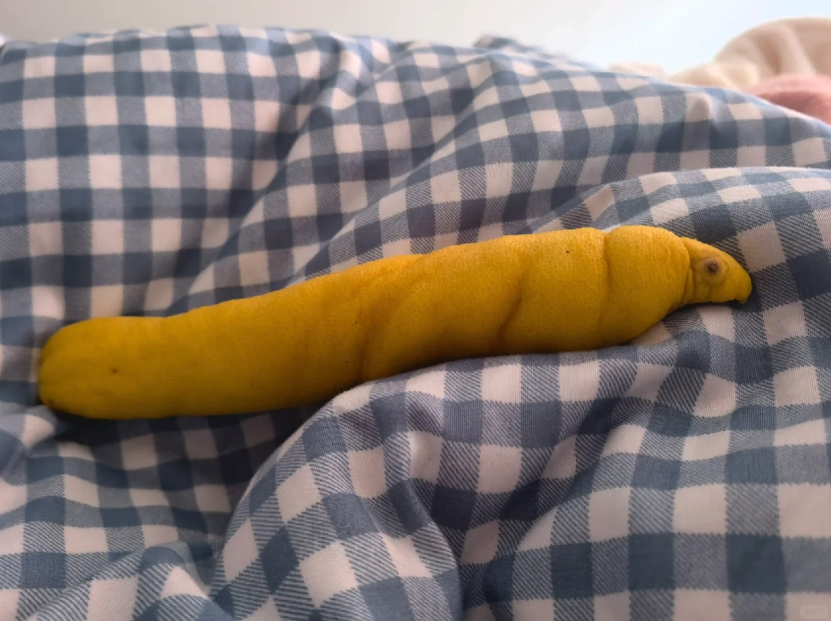 小紅書帳號「zz」前幾天就分享了一個讓他狂起雞皮疙瘩的時刻,他表示自己某天起床的時候,突然發現被單上出現了一條粗粗黃黃的條狀物,身上還有一條條皺摺!