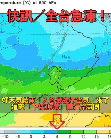 快訊/告別週末回暖!週一再變天「全台濕冷」 入冬最強冷空氣「這天下探10度」直逼冷氣團