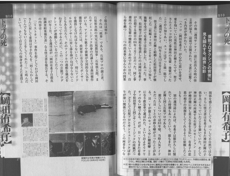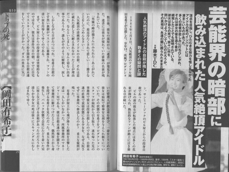 據了解岡田有希子當時喜歡已婚的演員峰岸徹(已故),但表白的時候遭到拒絕,由此才走上了不歸路。