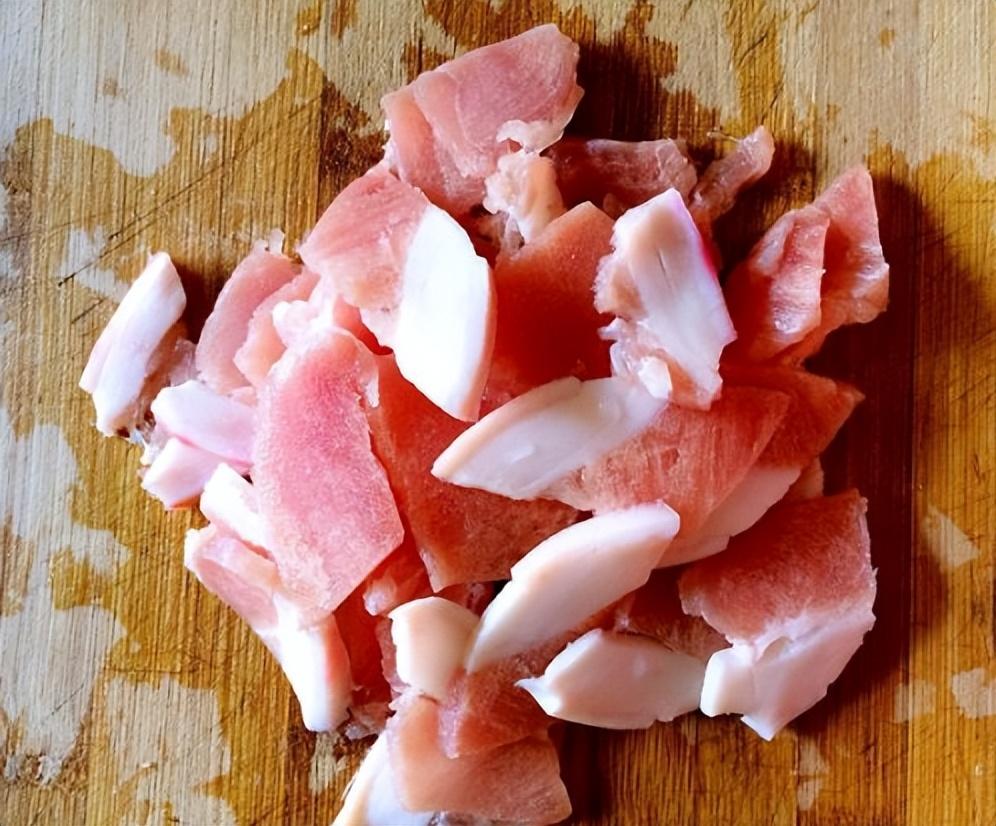 2、準備一塊豬肉,切成均勻的薄片,然後鍋中加水,倒入一點鹽和油,水開後放菜花焯熟撈出控干水分。然後鍋中燒油,油熱后倒出熱油,放入涼油,這樣可以有效防止肉片粘鍋。