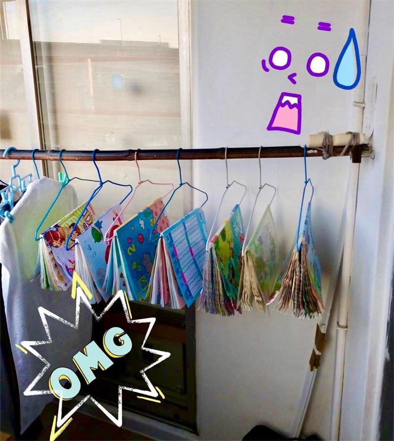 Kiki說,女兒把所有新課本都塞進書包裡面,但是沒發現水壺的蓋子沒有關,結果打開書包全部都泡水,整整泡了一整天,每本課本都皺巴巴跟開花一樣,聯絡簿也遭殃,讓他們沒辦法,只能土法煉鋼:「跟阿公分工合作,媽媽用電熨斗一頁一頁燙,阿公用吹風機一頁一頁吹」更緊張,只剩沒幾個小時就要白天,希望趕在孩子上學前將課本處理好,最後更無奈問大家:「家裡是不是有跟她一樣的課本破壞狂?」