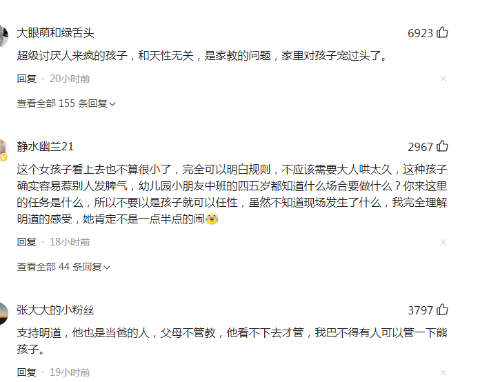 該段影片疑似是女童媽媽上傳,目的是想讓大家看看明道「耍大牌」,竟然在片場對一個無辜的孩子發脾氣,希望大家主持公道。然而,這位媽媽似乎沒有得到一面倒的支持,有網友表示,看到視頻後覺得小女孩確實過分,工作期間不受控,就是家長的責任。