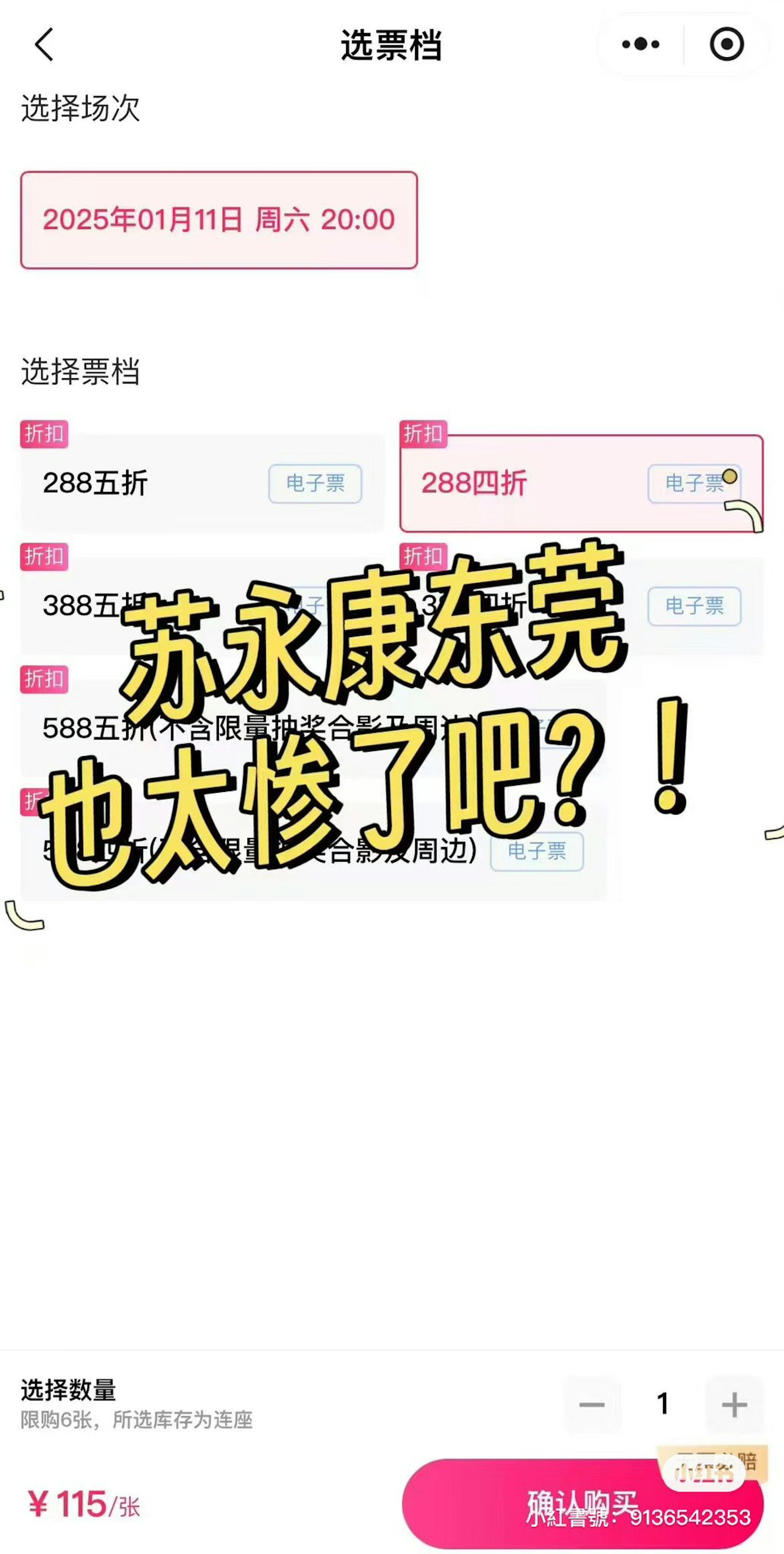 根據《香港01》報導,他就是58歲香港歌手蘇永康,有消息指出他在去年1月11號在中國舉辦「蘇永康solo音樂會」,票房面臨前所未有的考驗,據悉演唱會門票一度祭出四折優惠,低至115元人民幣(約台幣500),但仍乏人問津。有網友在社群平台上感嘆:「蘇永康東莞演唱會也太慘了吧?」更有大陸網友認為票價仍嫌昂貴,建議再降至三折。經過實地查證發現,目前門票已取消折扣,388元及588元人民幣的座位仍有大量餘票。
