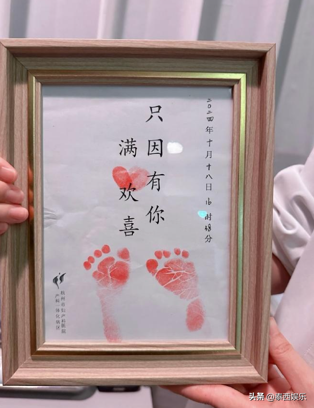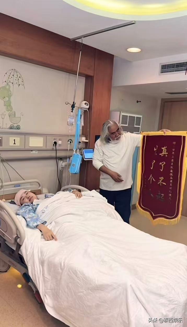 有一張是張紀中抱著小寶貝與老婆杜星霖的合照,杜星霖躺在病床上頭上還帶著月子帽,即便看著十分虛弱,但手也還托舉著小龍珠的雙腳。張紀中則是站在病床前看著妻子與女兒。