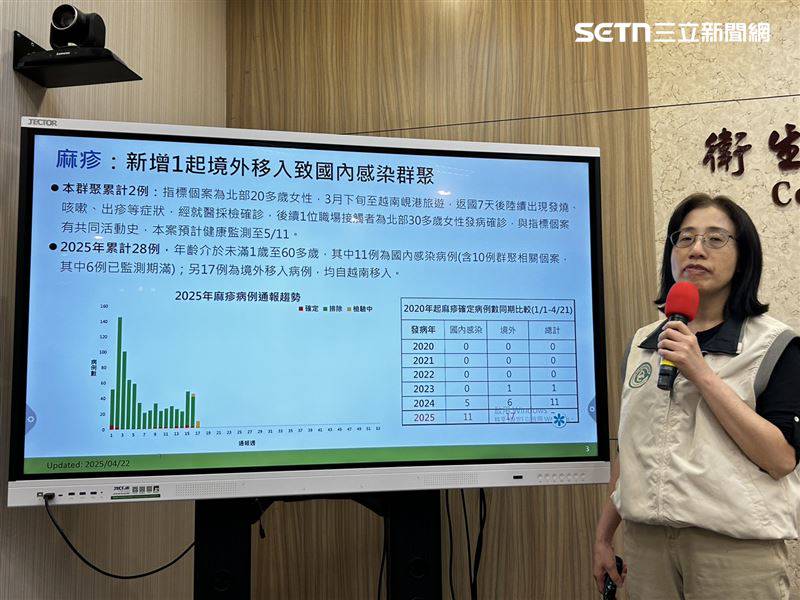 這起由麻疹境外移入致國內感染群聚事件,已是今年國內第4起麻疹群聚,疾管署副署長羅一鈞說明,今年截至4月21日已累計28例麻疹病例,其中11例為國內感染病例,另外17例全是自越南移入,這個數字已創下近六年同期新高。