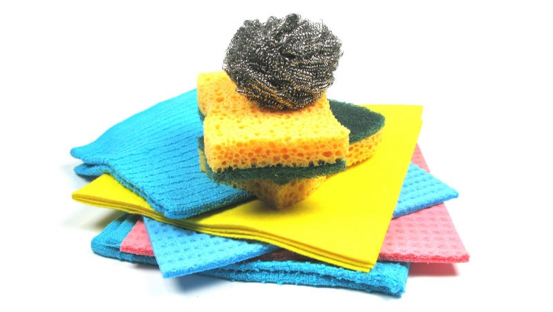 筷子可以先用清洗劑泡一會,用抹布洗掉筷子表面油漬等殘留物,再用流水沖凈,自然晾乾即可,切勿用力搓,更不能用鐵絲球搓。砧板需要每天清洗,然後用抹布擦乾表面水分,也不能用鐵絲球等用力擦洗。