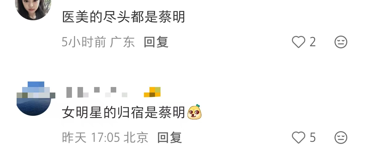 評論區不少網友稱「醫美的盡頭是蔡明」,像圈內許多年紀偏大一點的女明星在醫美過後,都越長越像蔡明。