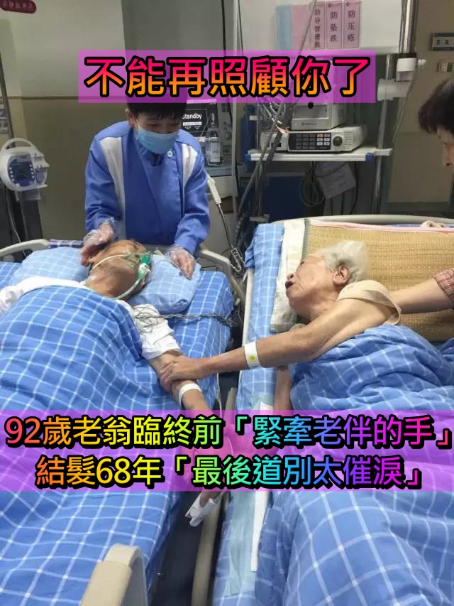 讓我拉拉她的手....92歲老翁臨終前「緊牽老伴雙手」互許來生 結髮68年「最後道別太催淚」