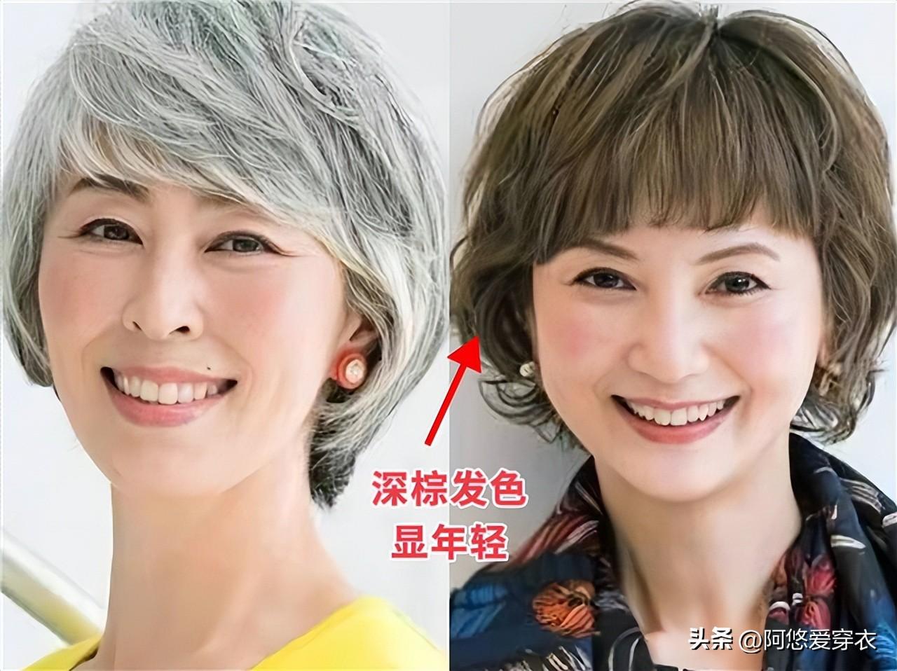 選擇了「酒窩髮」並不意味著就一勞永逸了,相信不少年紀大的女性都會發現自己的髮色變化,頭髮變白也容易顯老,如果你希望看起來年輕一點,藉助合適的髮型來改善自己的老氣感,試試染髮吧,自然的棕色髮色比黑色更洋氣,比白色年輕,所以年紀大的女性可以來試試。