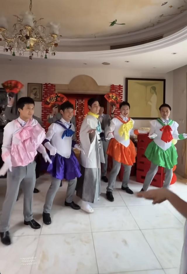 蔡頌思的婚禮按照傳統方式進行,因為她嫁的是日籍人士,所以接親的時候還挺特別的,蔡頌思沒有穿傳統的裙褂,穿了中式改良長裙,戴上了金鳳冠,而她的丈夫穿了日式的傳統服裝。當然接親的過程總得刁難一下新郎,日籍丈夫帶著伴郎到蔡頌思的豪宅接親,「過關斬將」才接到新娘子,蔡頌思公開了丈夫接親的照片,只見丈夫與伴郎團化身美少女戰士,大跳K-Pop,最終才抱得美人歸。