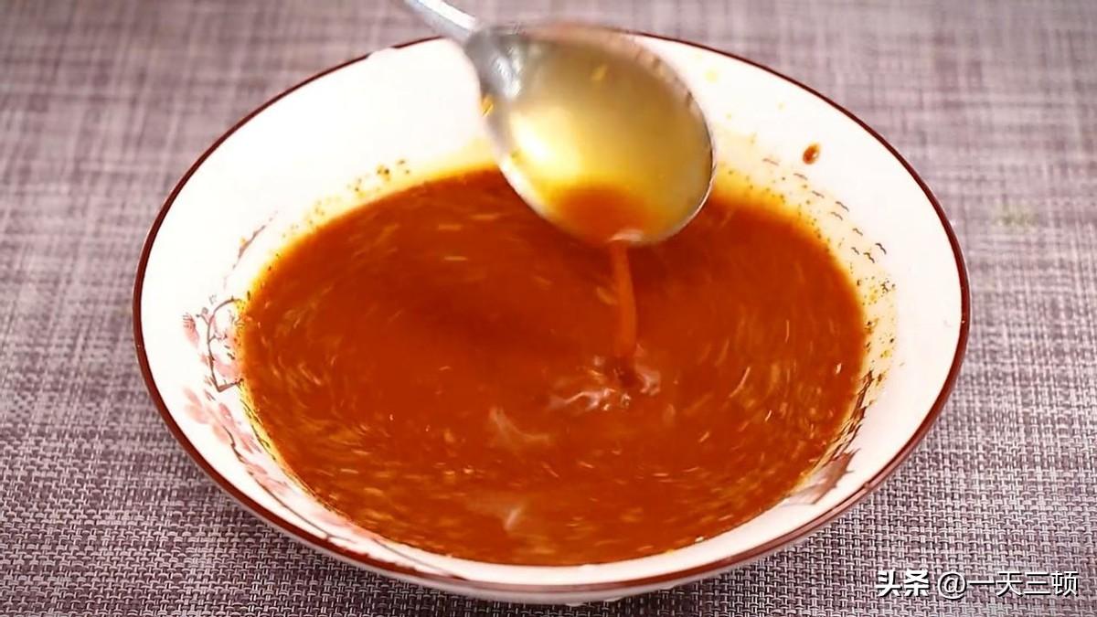 碗中加適量生抽,一勺蚝油,少許花椒粉,少許老抽,一勺白糖,適量鹽,最後加一勺澱粉,倒半碗清水攪拌均勻放一邊備用。