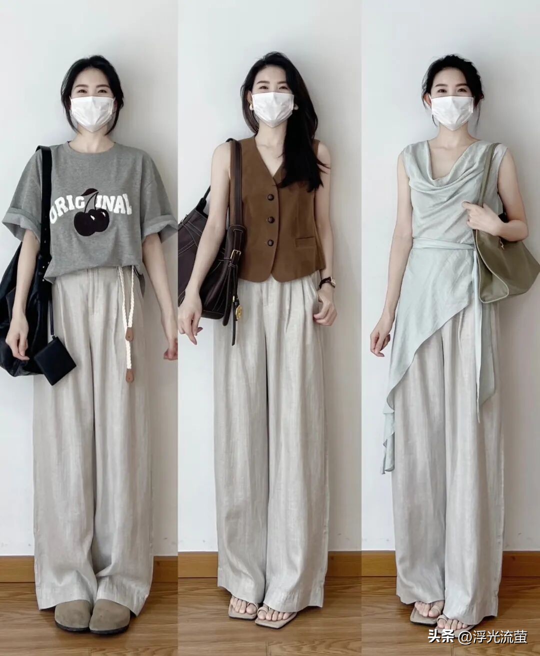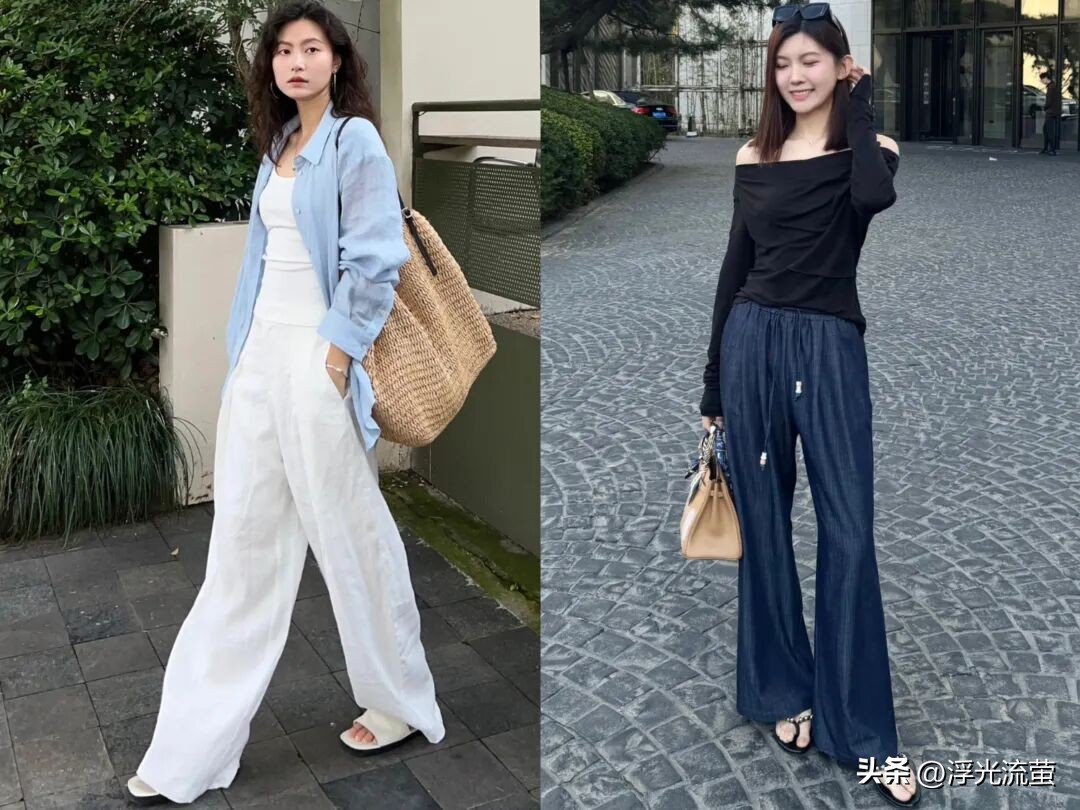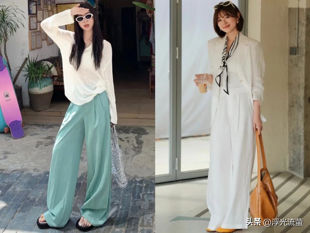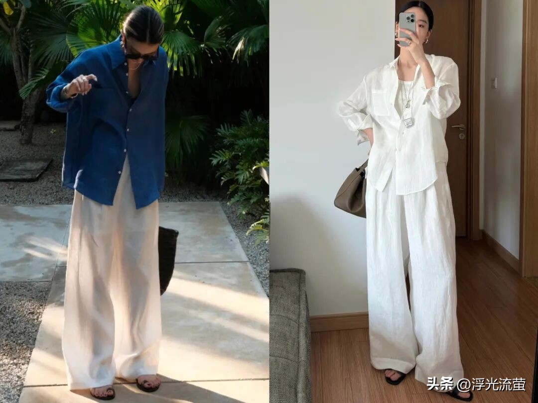 像今年春天的時候,我就發現「亞麻寬褲」特別火,也很符合我們穿衣需求。