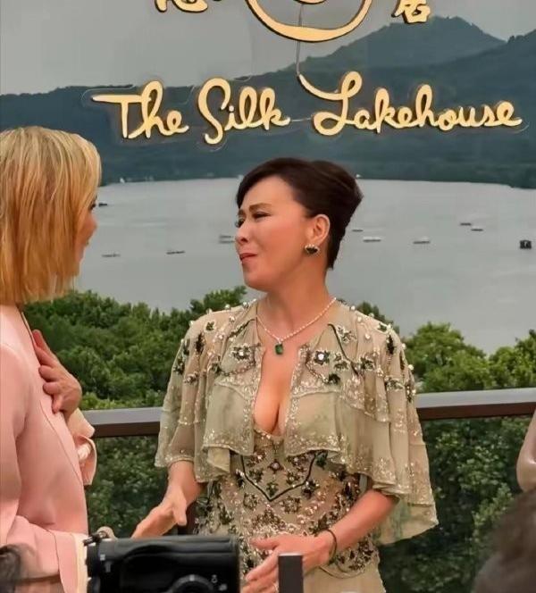 5月16日,劉嘉玲現身杭州香格里拉酒店開業活動,以深V亮片長裙和價值數百萬的祖母綠項鏈亮相。領口的設計幾乎觸及「事業線」禁區,讓很多網友直呼「性感路線反而放大了歲月痕跡」。