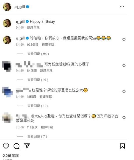 事實上,阿嬌6月跟皇甫聖華出去逛街時,就曾被對方親了一口,也剛好被拍到,結果今天皇甫聖華生日,阿嬌大方PO出親密照慶生,更讓不少人保守的中國粉絲震驚:「尊重,但不祝福!」、「有為粉絲想過嗎?真的心梗了!」也有網友認為對方不是好人:「喜歡男的眼光不行就算了,怎麼喜歡女的也這樣?」正當外界負評不斷,認為她是不是要出櫃了?阿嬌也馬上留言:「哈哈哈,你們放心,我還是最愛我的阿Sa!」