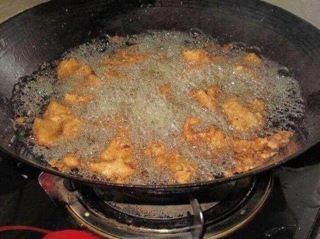 起鍋燒油,燒到大概七八成熱的時候,把拌好的五花肉放到鍋裡面開始炸,炸到略微發黃就出鍋,再等一會,將炸的微黃的五花肉再次下鍋,炸至金黃就可以出鍋了