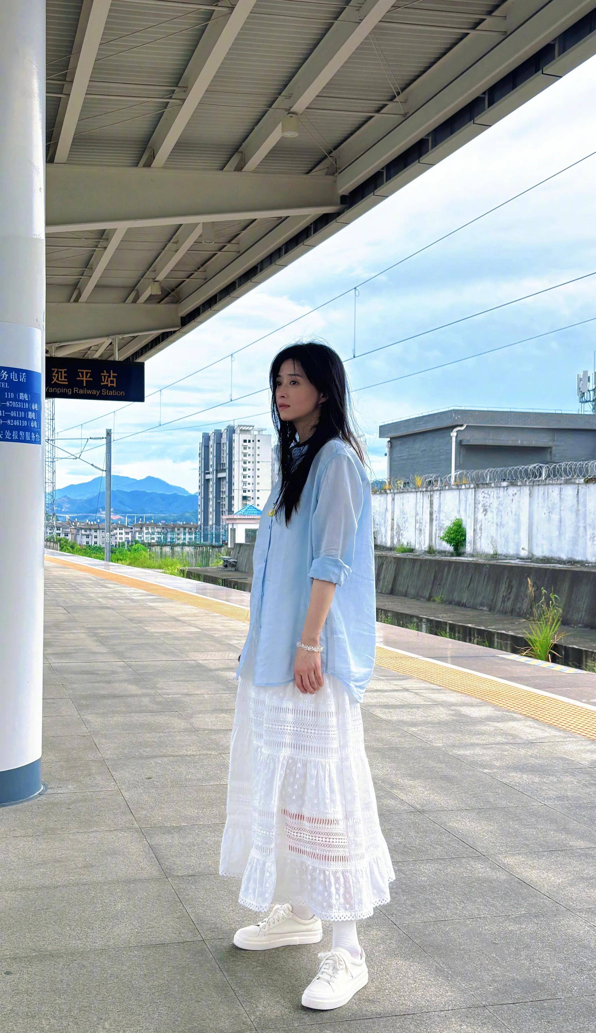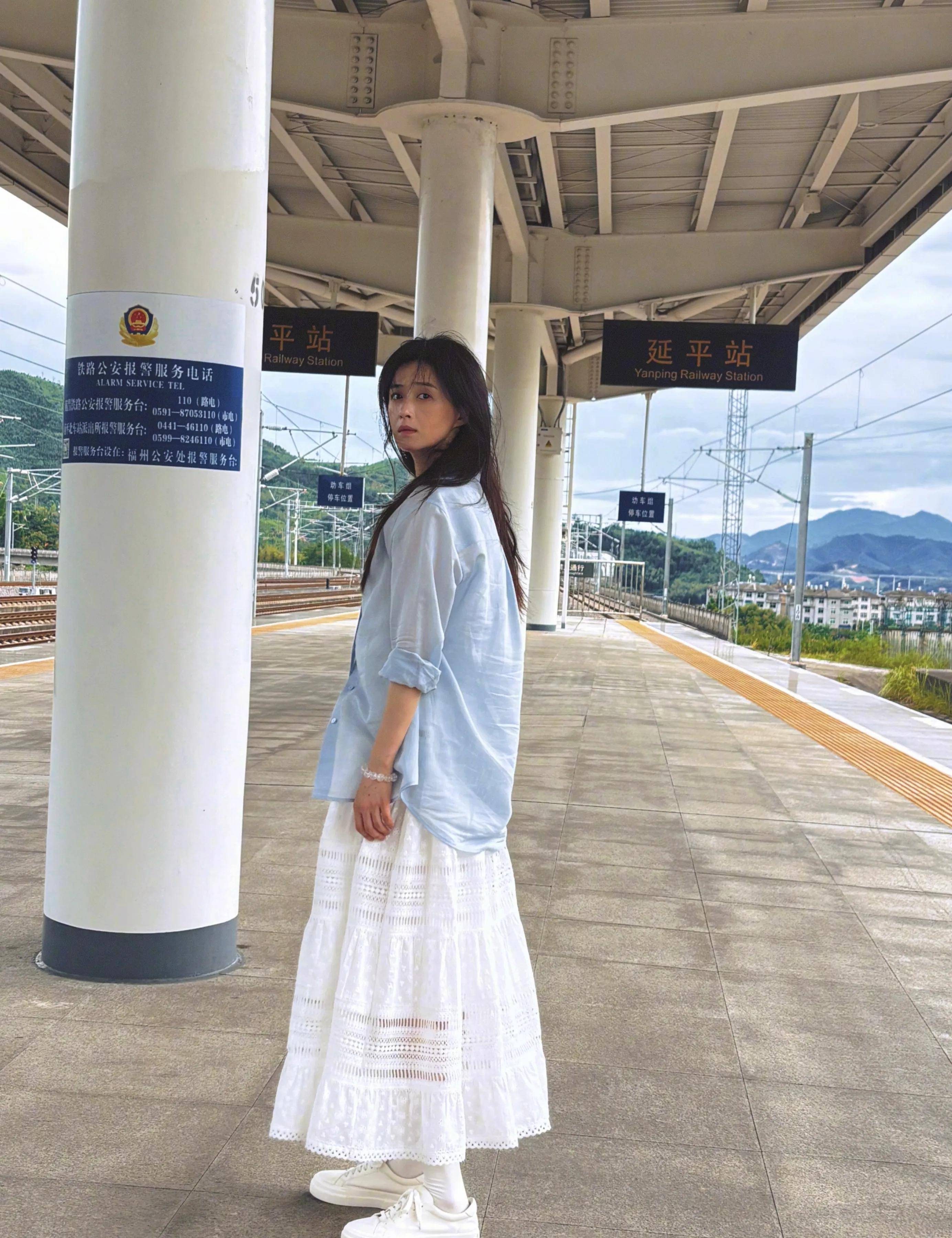 這組照片為蔣欣結束在福建12天度假模式的臨別留念,照片拍攝地點位於福建省南平市延平區延平站。