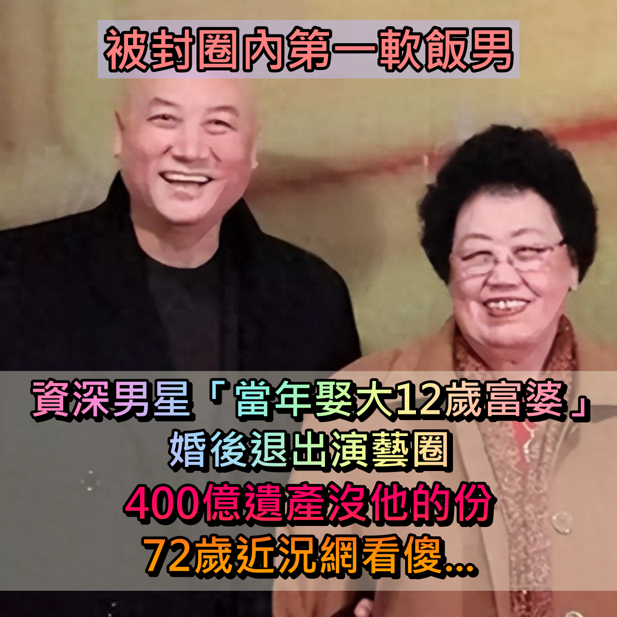被封圈內第一軟飯男!資深男星「當年娶大12歲富婆」退出演藝圈 400億遺產沒他的份「72歲近況網看傻」