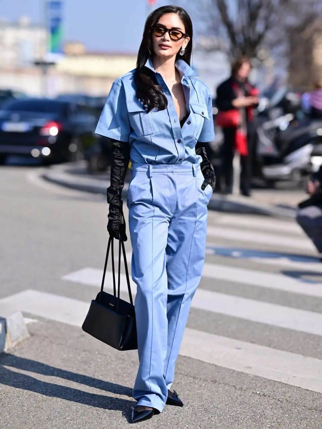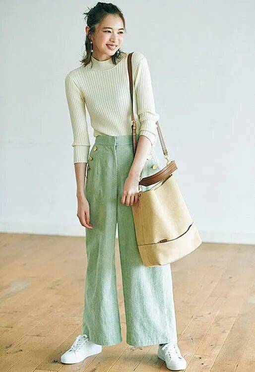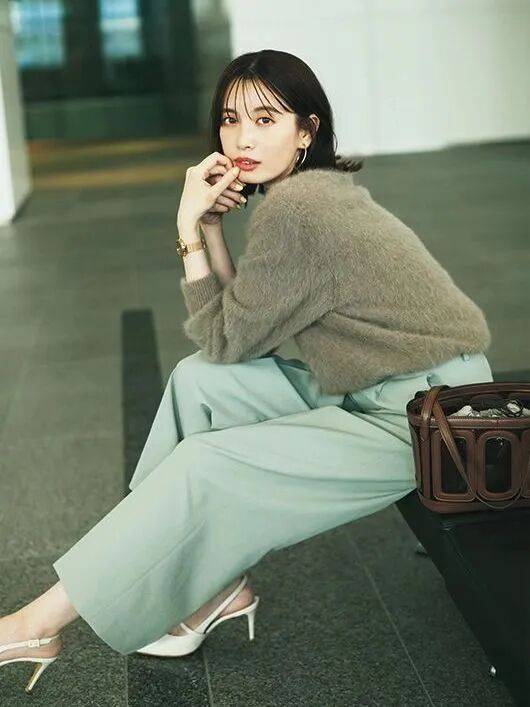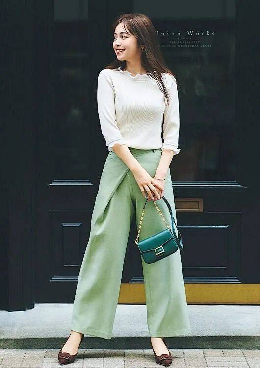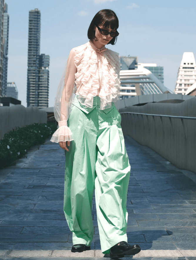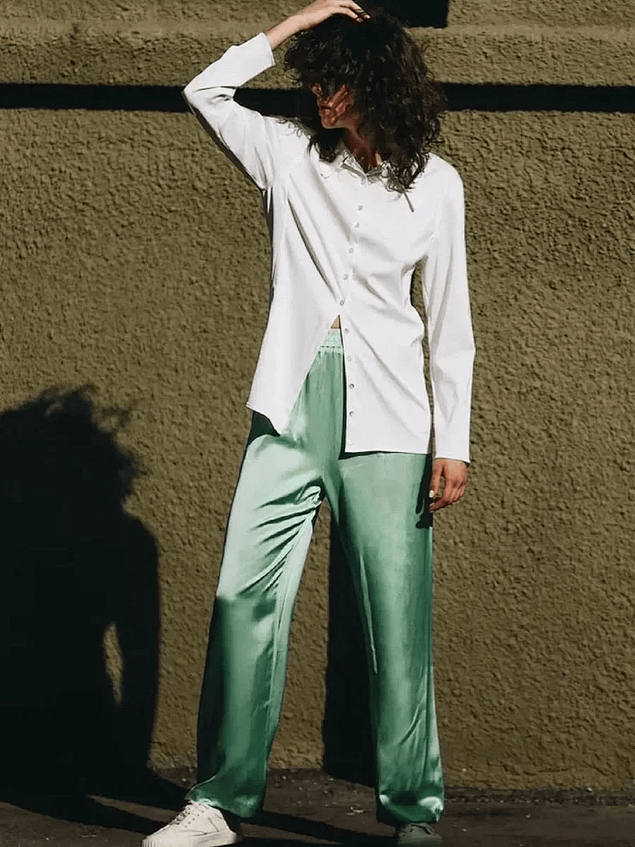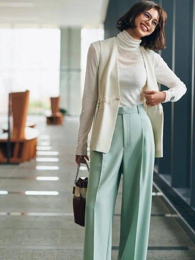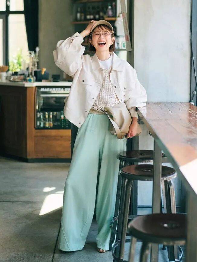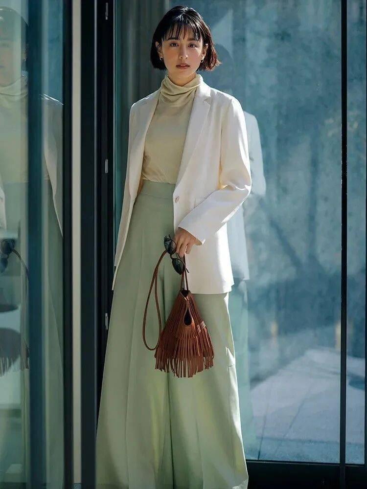 鼠尾草綠的寬褲,自帶冷靜氣,保留了一點點藍色的冷靜和黃色的微暖,安靜、剋制、也很有分寸感。