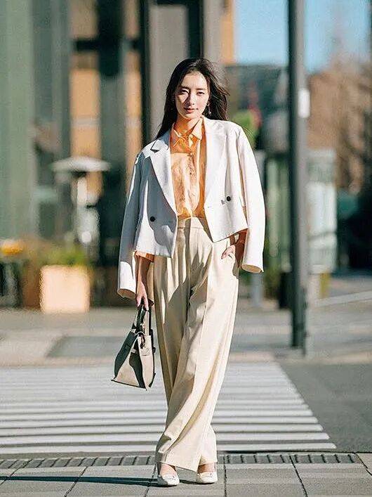 不必擔心它的場合適配度不高,搭配白色西裝外套或上衣,一樣可以很智性幹練,甚至一改往日黑白灰的沉悶,給人眼前一亮的美。