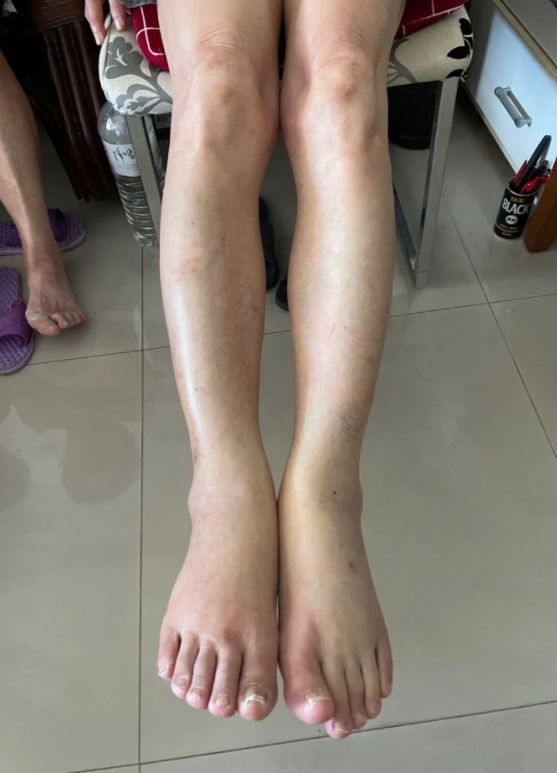 爺爺這雙腿真的很強耶!比小編還要白皙透亮...太誇張了!不過水腫的部分,也希望爺爺沒事啊!