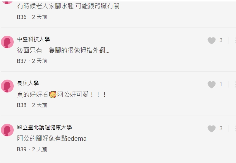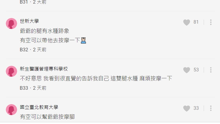 不過也有眼尖的網友發現,爺爺雙腿的比例上,似乎有一點「水腫」的跡象,也好心提醒:「有時候老人家腳水腫,可能跟腎臟、心臟有關,建議去看一下醫生喔!」、「皮膚是真的很好,不過爺爺水腫很厲害耶,這有點不正常,希望你馬上去看醫生,檢查一下腎臟!」。