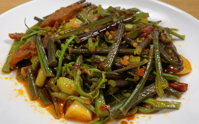 具體做法:1、蕨菜炒之前要用清水浸泡兩三個小時,泡去裡面的苦味,並把一部分毒素泡出來。之後把蕨菜老的一段切去,清洗乾淨。2、接下來把蕨菜開水下鍋,加入食鹽和食用油焯水,把蕨菜煮至半熟就可以撈出來了,不需要煮太長時間。焯水後的蕨菜過涼後,控乾水分切成段備用。