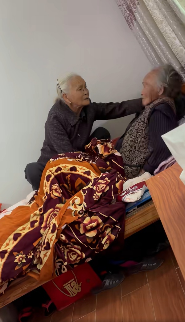 其中一段影片特別引人注目,畫面中可見陳奶奶正和另一位滿頭白髮的老太太在床邊談心,原來是91歲的女兒回到娘家向媽媽傾訴心事。高齡91歲的老太太在對話時彷彿回到童年時光,當113歲的母親溫柔撫慰時,臉上綻放出孩童般純真的笑容。因為女兒身體微恙,一大早就趕來探視,用柔軟的語氣關懷著母親的身體狀況。