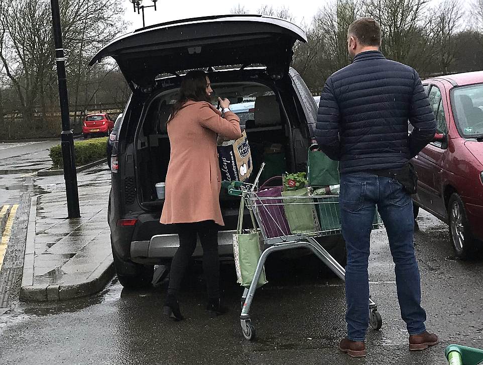 民眾也拍下凱特王妃正在採購的樣子,只見她身穿著粉色長外套, 下半身則是搭配黑色緊身褲及短靴,就算已經進入待產階段,身材還是十分纖細,而之後她更使用快速結帳系統進行結帳動作。