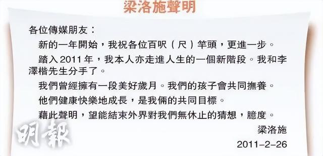 可她忘了,李澤楷是不婚主義,在她之前緋聞不斷,在她之後,也不會有什麼改變。有人說,梁洛施是戀愛腦,放棄大好前程跟一個比大20多歲的男人在一起,生了三個兒子也沒換來一紙婚約。實際上樑洛施才清醒,在她明白自己不能改變這個男人時,她果斷選擇了分手,並且與李澤楷共同撫養孩子,兒子跟她一起生活。