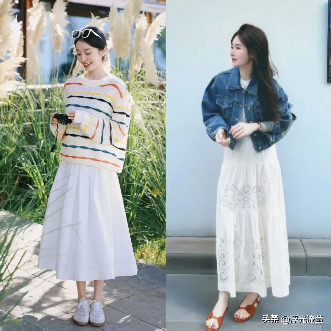 搭配「初戀裙」的鞋子,最好以簡約輕盈為主,可以選擇百搭休閑的小白鞋,日常穿舒適又減齡;
