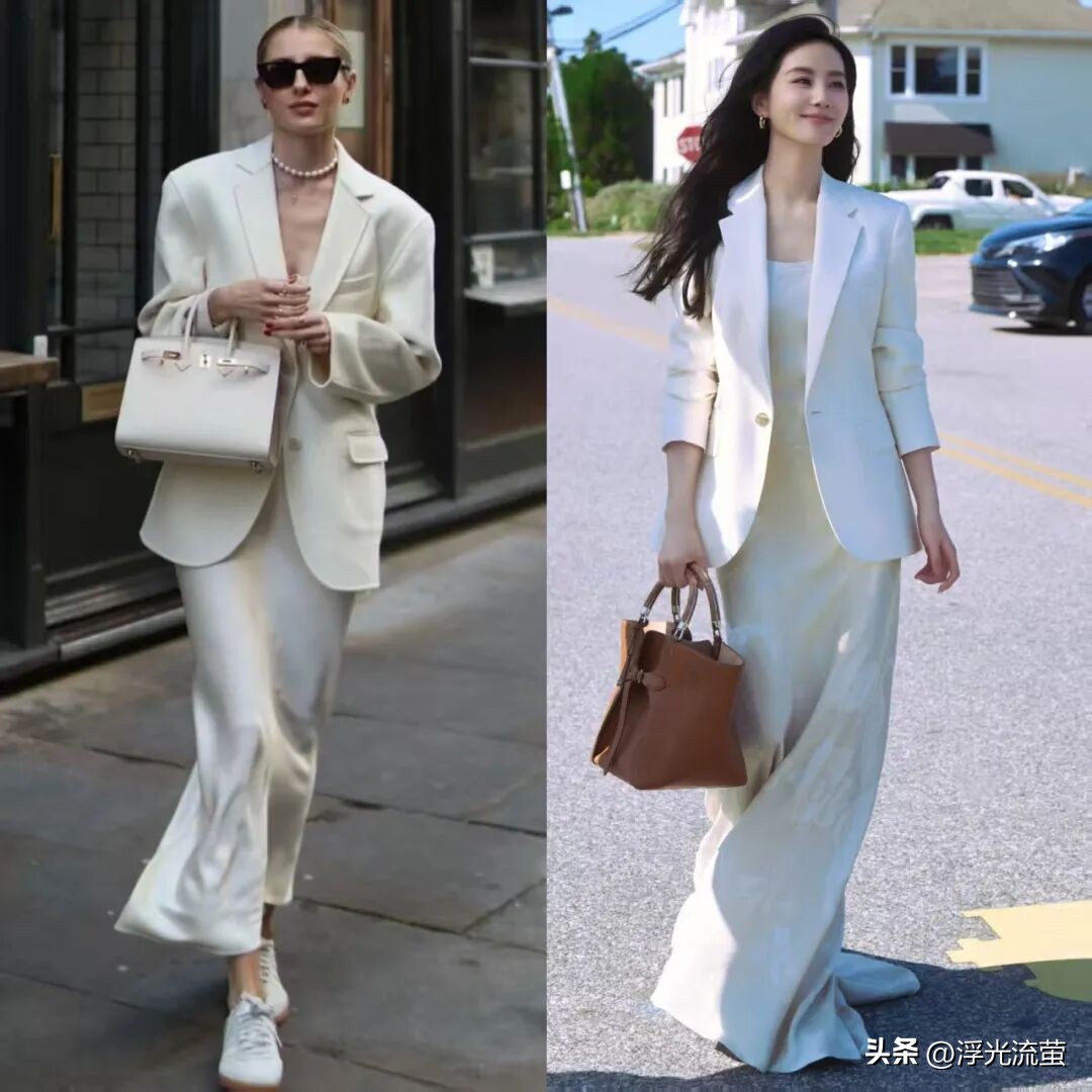 或者選擇搭配一件簡約西裝、襯衫,這樣的搭配會讓我們看起來更加幹練又溫柔,上班或日常出門穿都非常合適。