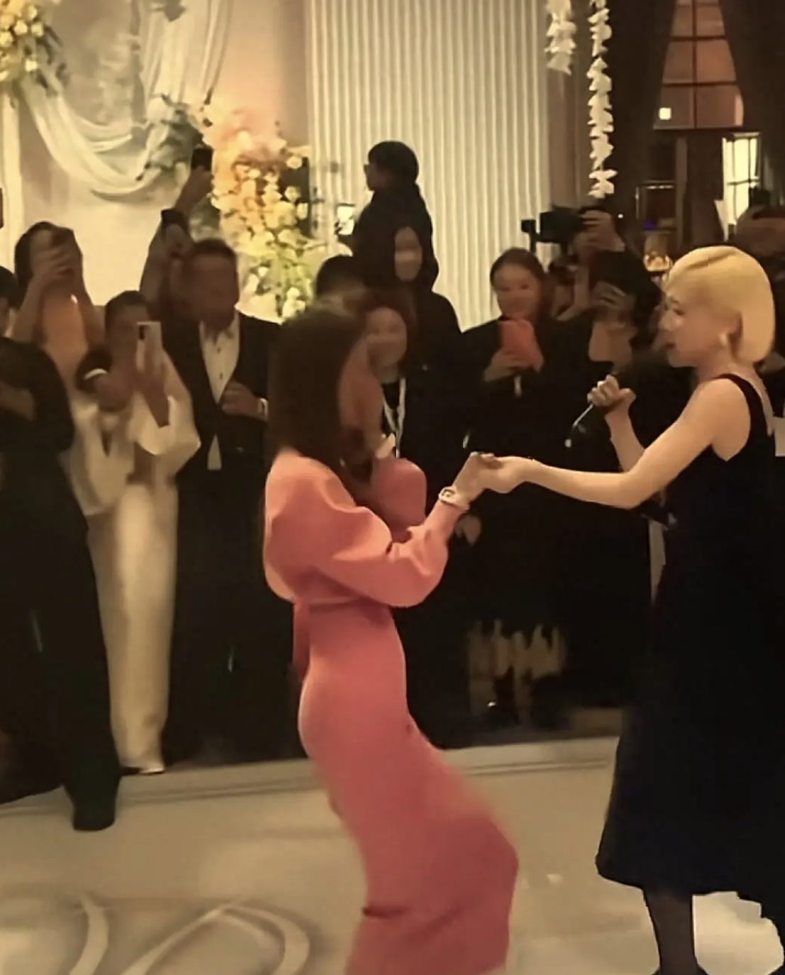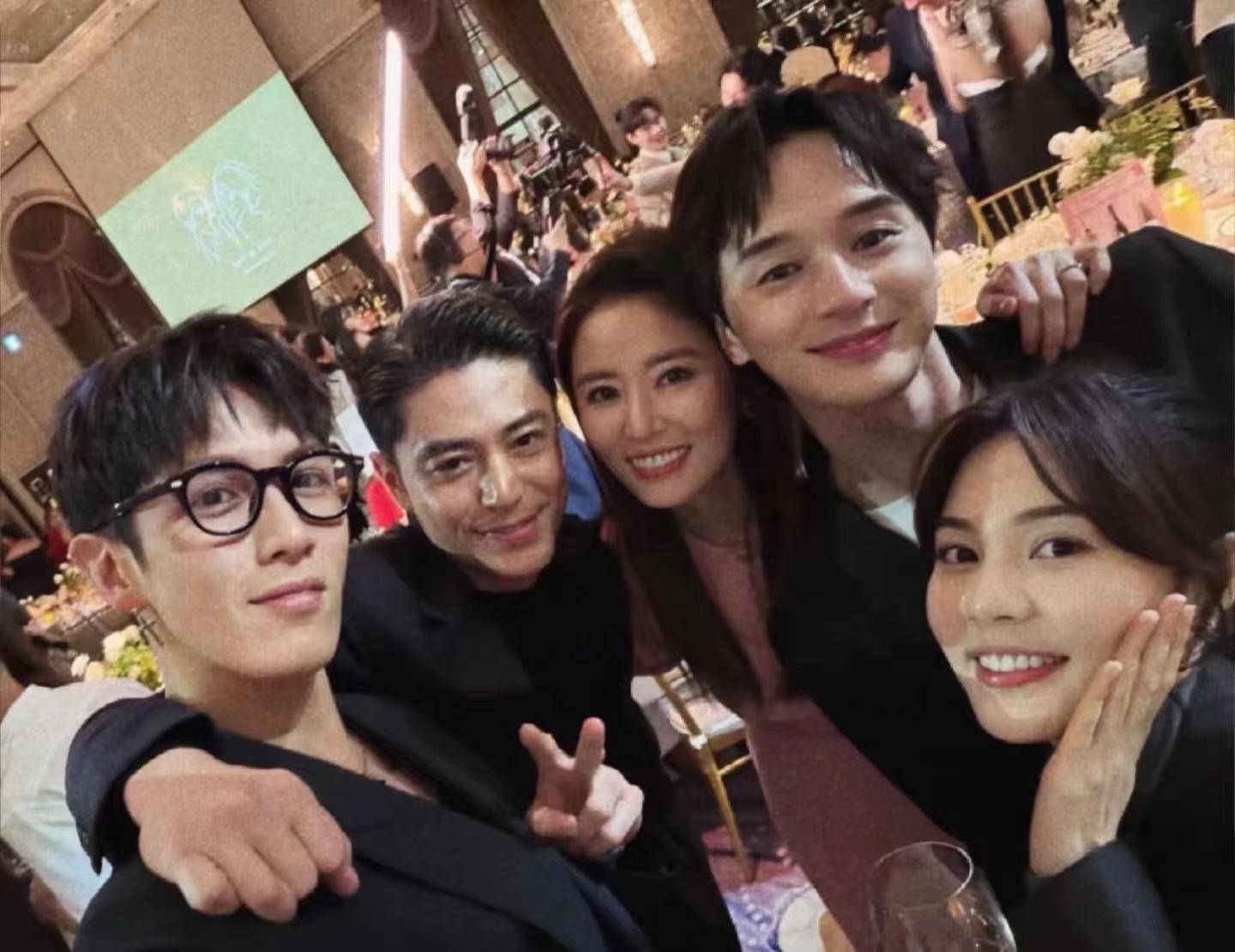 還有和陳怡蓉及醫美老公的合照,大家臉上都帶著禮貌而客氣的微笑。最有趣的還是和關穎夫婦的合影,關穎瘦削而時髦,完全看不出與林心如同齡,而她身邊的企業家老公則顯得更成熟些。這張照片裡的霍建華,表情又恢復了他經典的「社恐式嚴肅」,緊緊靠著老婆,彷彿在說,「我是誰,我在哪,但好在有你在。」這種不經意流露的依賴感,反而比刻意的甜蜜更戳人。