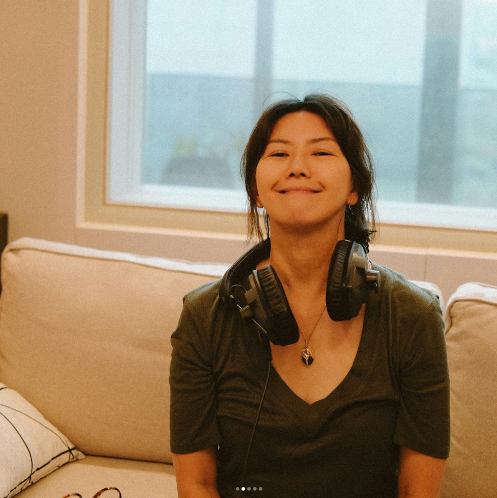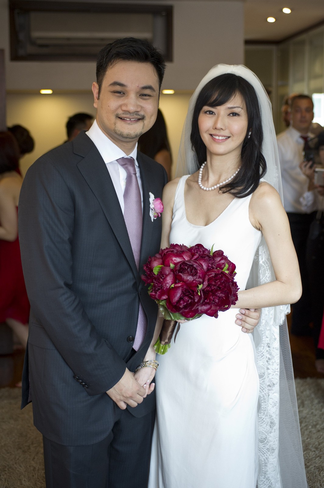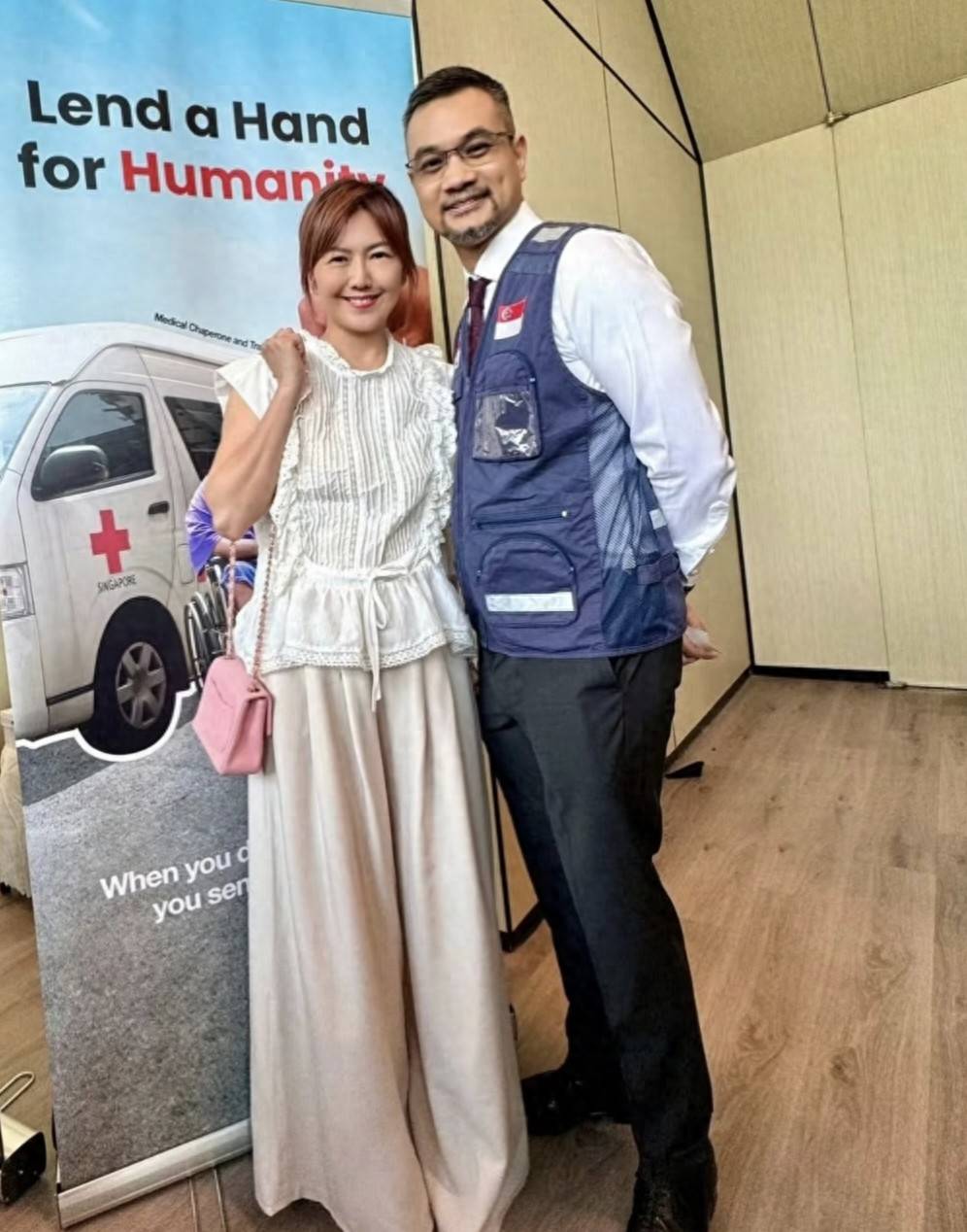 她染著一頭黃色染髮,身材看起來格外纖瘦。因為佩戴口罩,粉絲一開始未能認出她,直到看到她的丈夫,才確認身份。