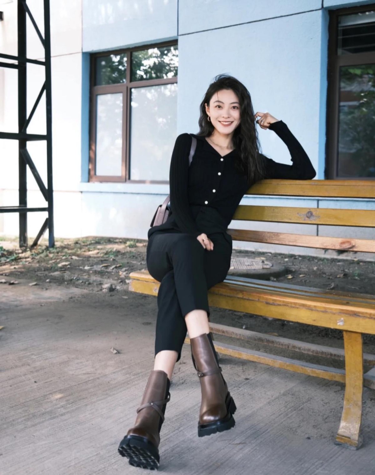 及踝靴搭配褲子的情況有很多,直接搭配九分褲很省事。若搭配長褲,需要注意,褲子的長度只能稍微蓋過鞋面的一點,這樣腿看起來會更加修長。