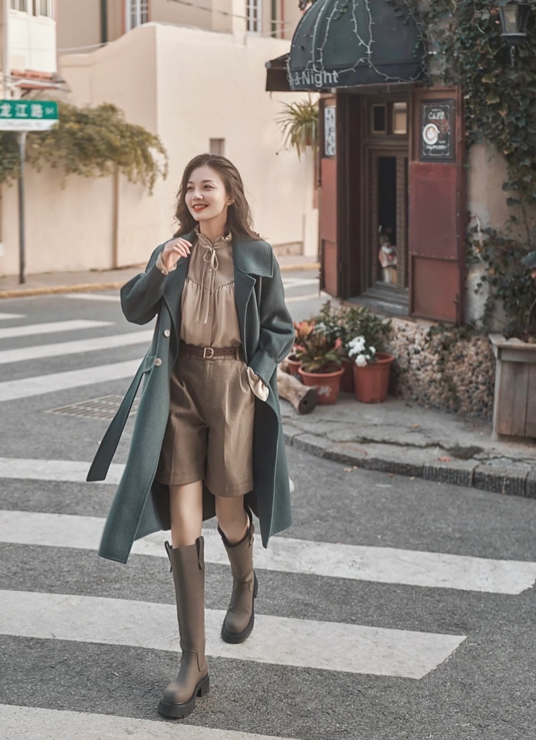 煙筒靴這樣子的厚底靴,一般搭配褲裝比較多,而厚底的長靴,則更適合搭配短下裝,由於有了厚底,它比一般的長靴更多一份酷颯感,與此同時,對於小個子來說,也是增高利器。