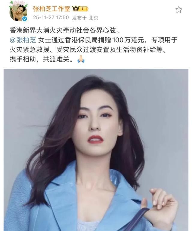 今年香港大埔倉庫失火,她第一個捐款。金額不算驚天,但動作夠快,港府官方賬號直接點名致謝。公益圈評價她「執行力高於宣傳度」。