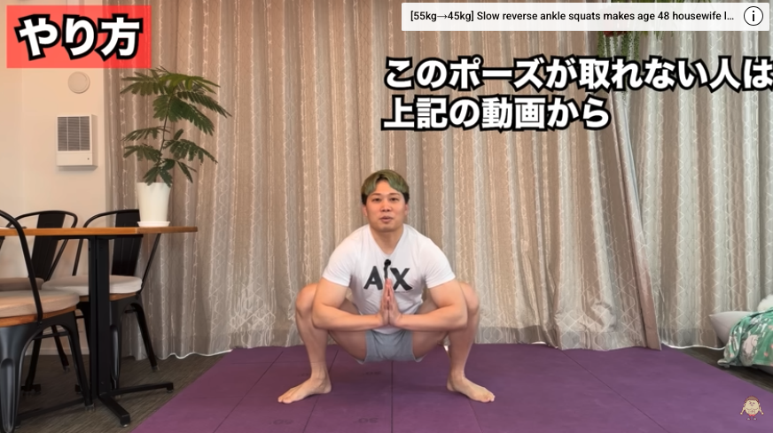 日本健身Youtube頻道「Muscle Watching」分享,首先最重要的就是「慢」的關鍵。運動時,雙腳與肩同寬站立,腳尖稍微向外,確保雙腳後跟穩固貼地。接著將雙手合十,肘部輕推膝蓋內側,同時收緊全身核心肌群,以超慢速度往下蹲。這樣的動作雖然看似簡單,但做沒幾下就會讓人大量流汗。